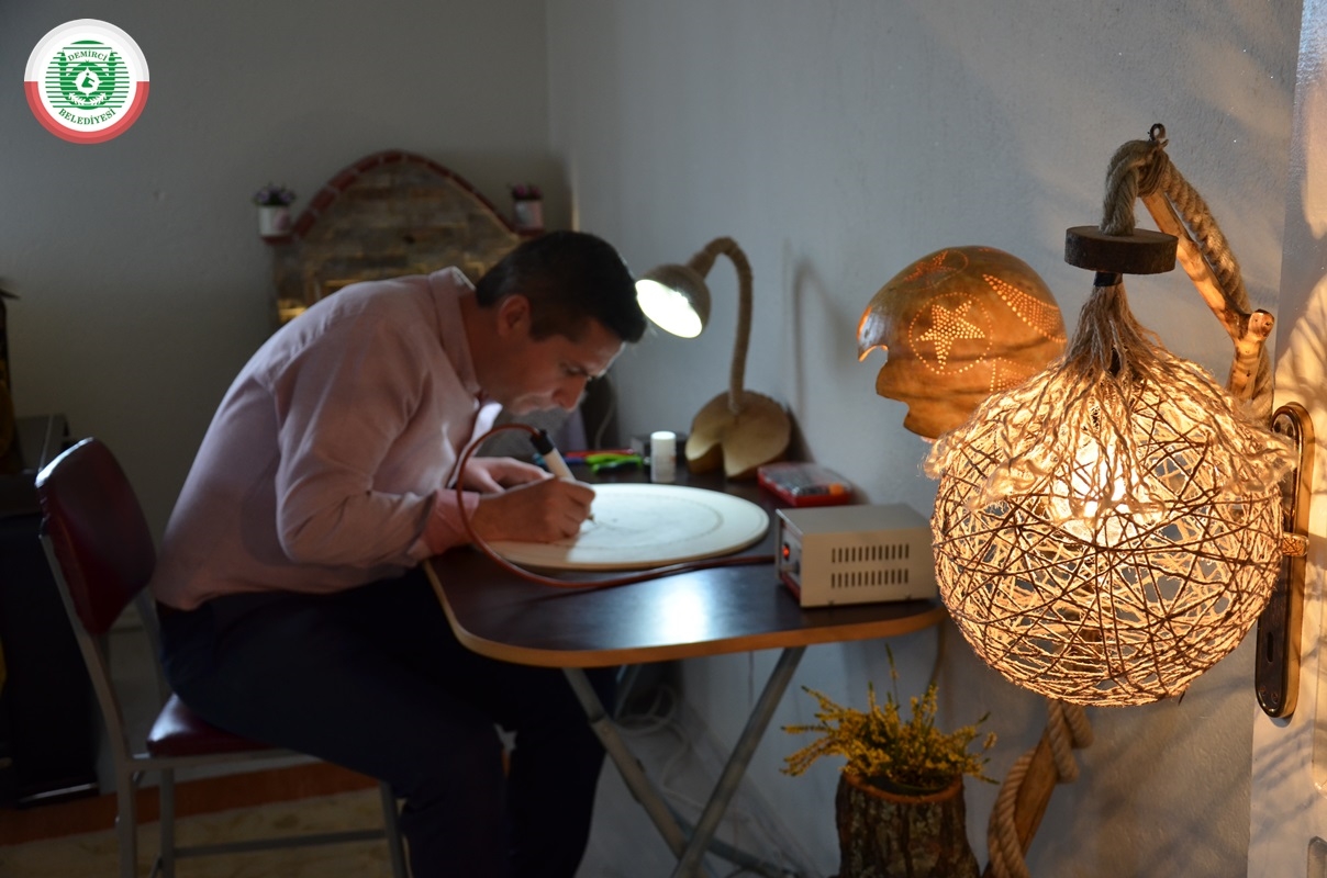 Demircili İmam Muharrem Gümüş, hobi amaçlı başladığı ahşap yakma sanatında ustalara taş çıkartacak çalışmalara imza atıyor.