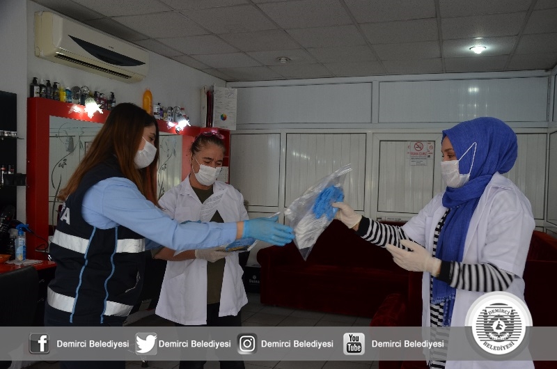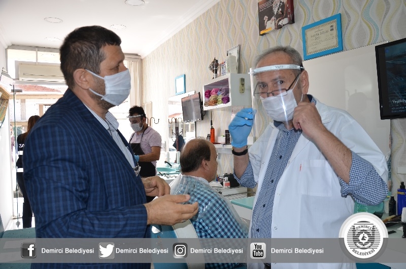 Belediye Başkanı Selami Selçuk'ta, 51 günlük aranın ardından işyerlerini açan berberleri ziyaret ederek, maske, eldiven, yüz koruyucu siper ve yerli üretim olan Borel dezenfektan hediye ederek, bereketli kazançlar diledi.
