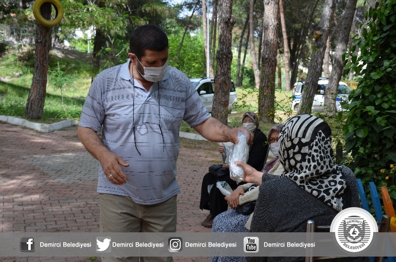 Başkan Selami Selçuk, Zabıta ekipleri ile birlikte ilçe merkezindeki parklarda gölgede temiz havanın tadını çıkaran yaşlılara ve kronik hastalara kolonya ve maskeden gibi çeşitli malzemelerden oluşan hijyen paketi vererek, taleplerini dinledi.