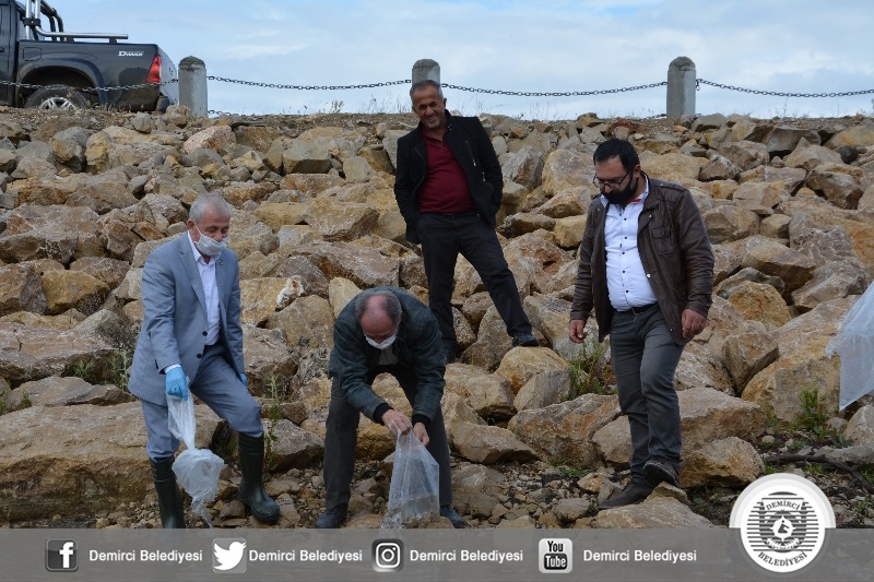 Demirci Kaymakamı Adem Kaya, Belediye Başkanı Selami Selçuk, İl Tarım ve Orman Müdürü Metin Öztürk ve İlçe Jandarma Komutanı Teğmen Murat İnce ile birlikte Kılavuzlar Sulama barajına 5 Bin adet pullu sazan balıkları bırakıldı. Ayvaalan Sulama barajına da 4 bin adet pullu sazan balığı bırakıldı.
