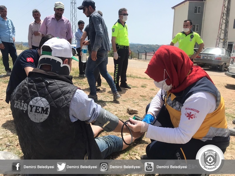 Kazada yaralanan Yusuf K., eşi Ayşe K., Yusuf G. ve Turan G. sağlık ekiplerince Demirci Devlet Hastanesine kaldırıldılar.