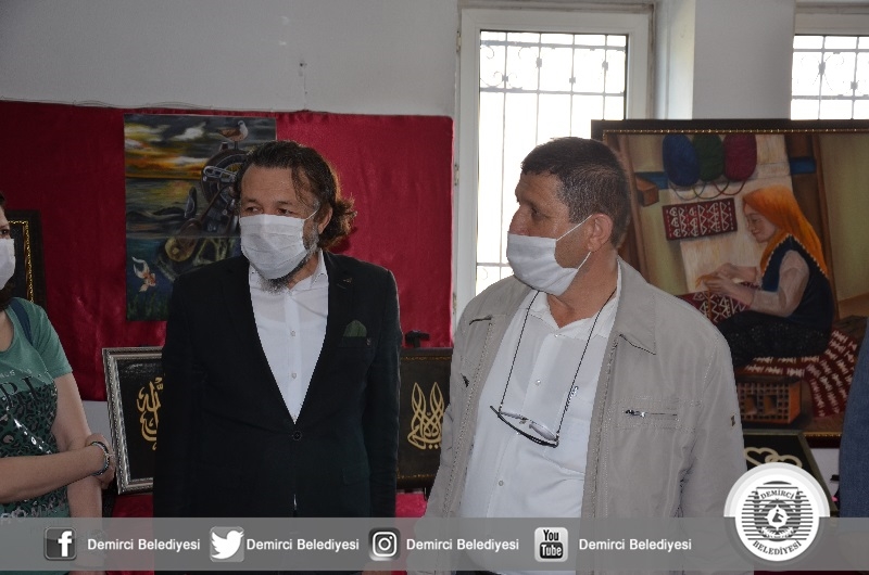 Kovid-19 salgını tedbirleri çerçevesinde az kişinin katılımı ile yapılan sergi açılışında Kaymakam Kaya ve Başkan Selçuk, Halk Eğitimi Merkezi Müdürlü kursiyerlerinin naht, ebru, resim, çini, ahşap boyama, geri dönüşüm, örgü, dikiş, takı tasarım ve kağıt rolyef kurslarında hazırlanan eserleri incelediler.