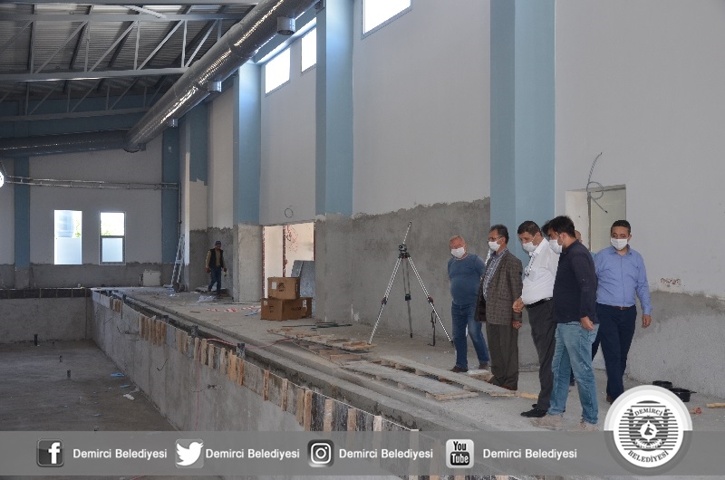 Başkan Selami Selçuk ilk olarak Gençlik ve Spor Bakanlığının destekleri ile Demirci Belediyesi tarafından yapılan Yarı Olimpik Yüzme Havuzu inşaatını gezdi.