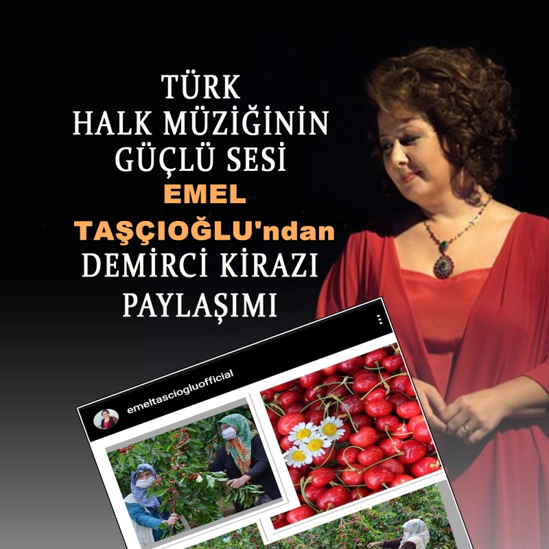 Türk Halk Müziğine sesi ve yorumu ile değer katan sanatçı Emel Taşçıoğlu'ndan Demirci Kirazı ve Demirci'ye özel şahsi ınstagram hesabından Demirci'nin fotoğrafları ile paylaşım yaptı.
