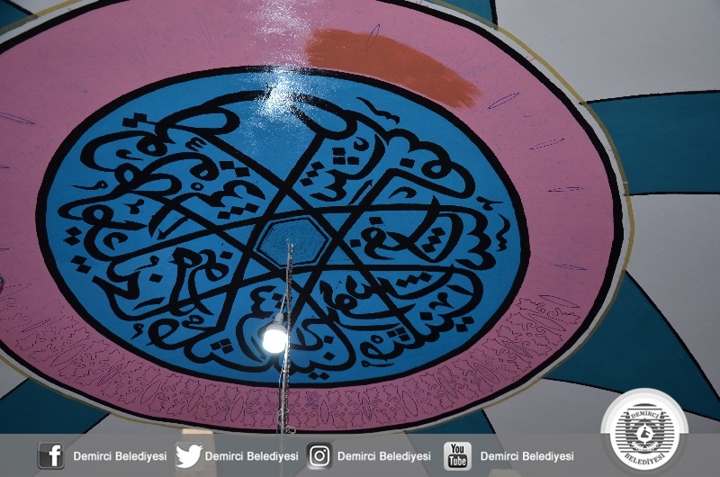 1966 yılında mesleğe başladığını söyleyen nakkaş ustası İbrahim Tosun, askerde iken tabelalar üzerine çalışmalar yapıyordum. Mesleğimiz askerden sonra da sürdürdüm. Demirci ve birçok ilçede camilerde çalışmalar yaptım. Şimdi de Demirci'mizin tarihi camisini yapmak nasip oldu. Kubbesinden başlayarak şu anda caminin iç cephesinde tüm nakkaş işlemelerini yapacağım. Nakkaş'da en iyi ve uzun yıllar dayanabilecek boya plastik boyadır. Önemli olan elinizi titretmeden yazabilmek önemli. Kalıpla boya yapacağınız alanı çizdikten sonra boya ile üzerinden titiz bir şekilde geçmek ve sonrasında da kenar temizliğini yapmak gerekiyor" dedi.