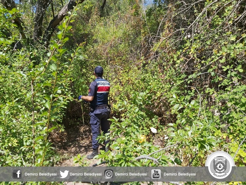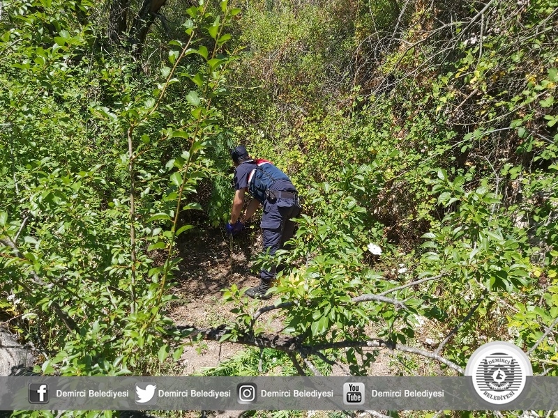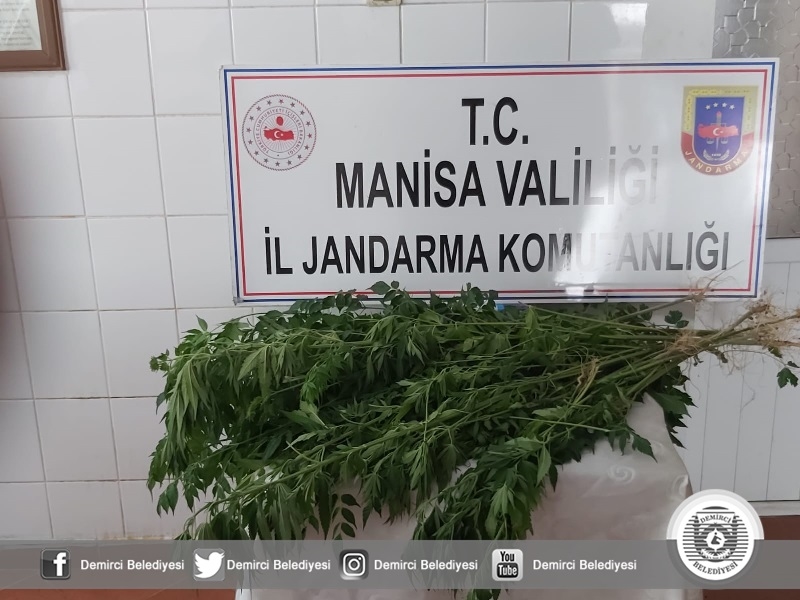Demirci ilçe Jandarma Komutanlığının yaptığı çalışmalarla arazide ekili halde 75 kök hint keneviri yakalandı.