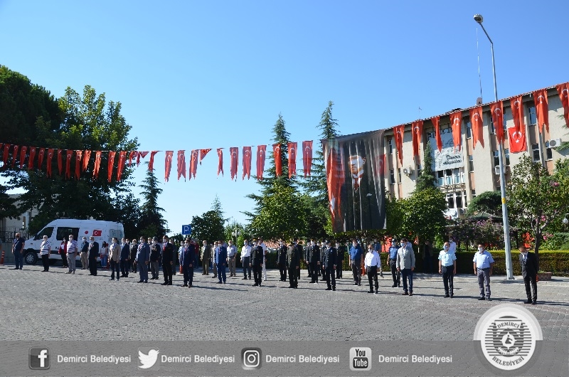 30 Ağustos Zafer Bayramı törenine Demirci Kaymakamı Adem Kaya, Belediye Başkanı Selami Selçuk, Cumhuriyet Başsavcısı Hakan Erdoğan ve ilçe protokolü katıldı.
