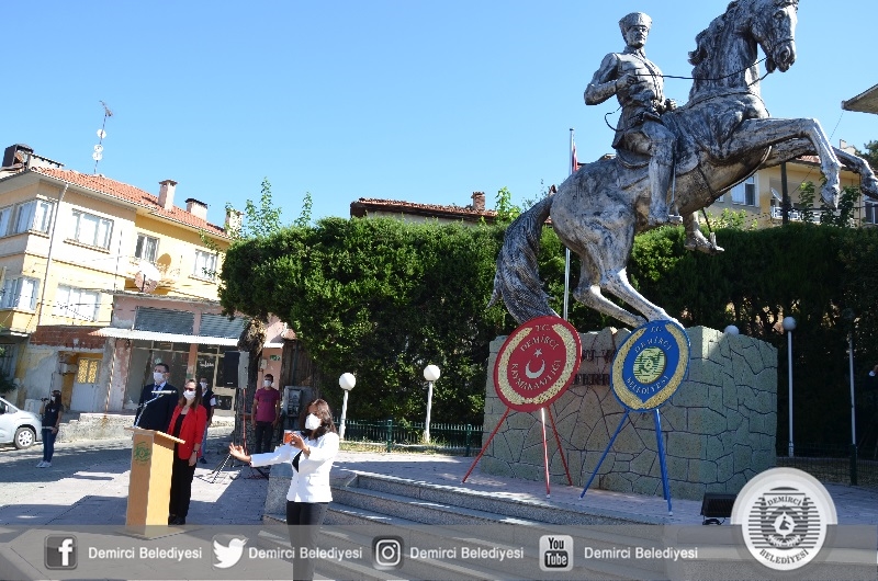 30 Ağustos Zafer Bayramı töreninde Demirci Kaymakamı Adem Kaya ve Belediye Başkanı Selami Selçuk tarafından Atatürk anıtına çelenk sunumu yapıldı.