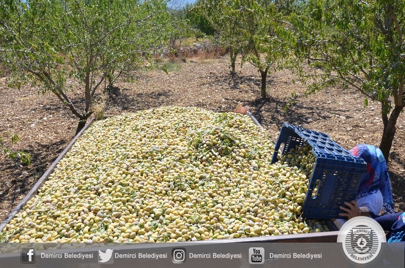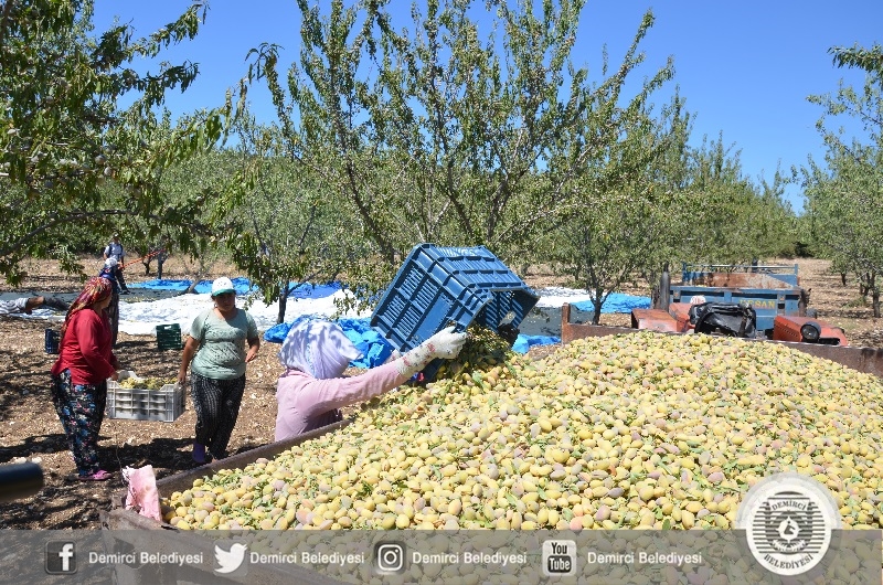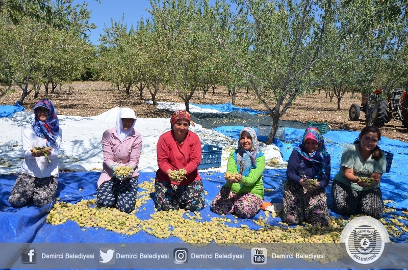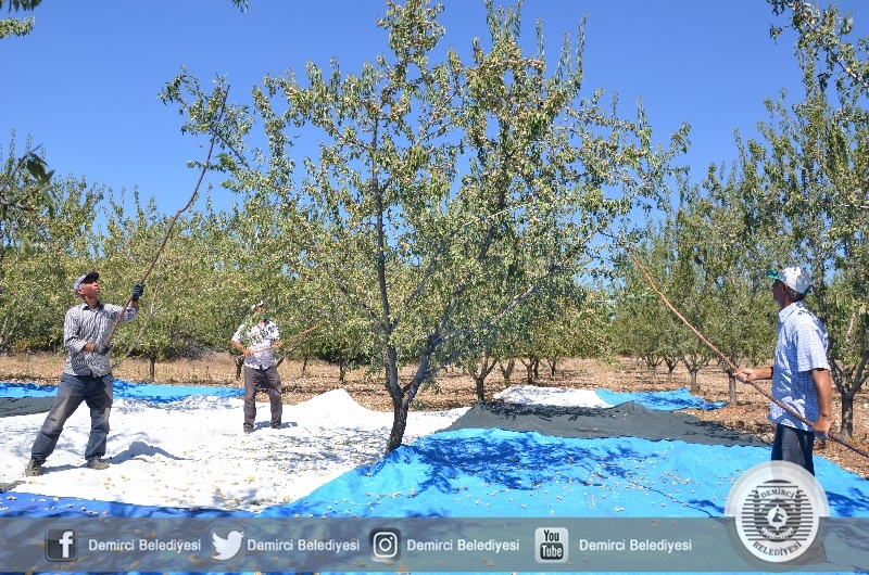Demirci'de ilçe merkezinin yanı sıra Mezitler, Boyacık, Alaağaç, Örücüler, Çanakçı ve Mahmutlar olmak üzere 20'ye yakın mahalledeki 7 bin dekar arazide badem hasadı başladı.