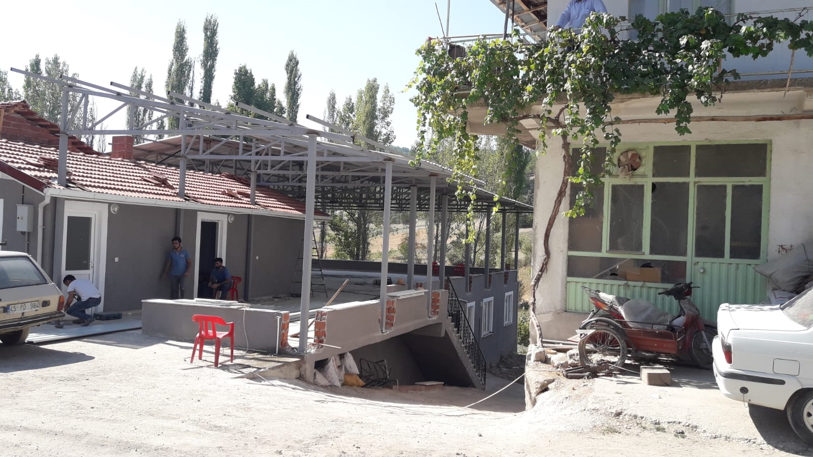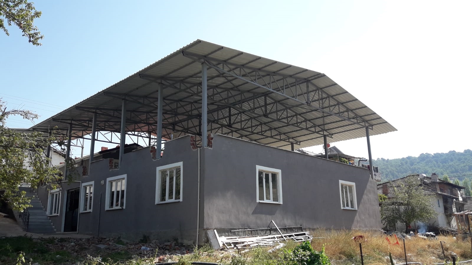 Çok amaçlı salonun üst kat balkonununda düğün, sünnnet ve yemek organizasyonu gibi toplu törenlerde de kullanılabilmesi, ayrıca dışarak mahalleye gelen alıcılarında kullanabileceği bir alan olması için çatı kaplama çalışmasına başlandı.