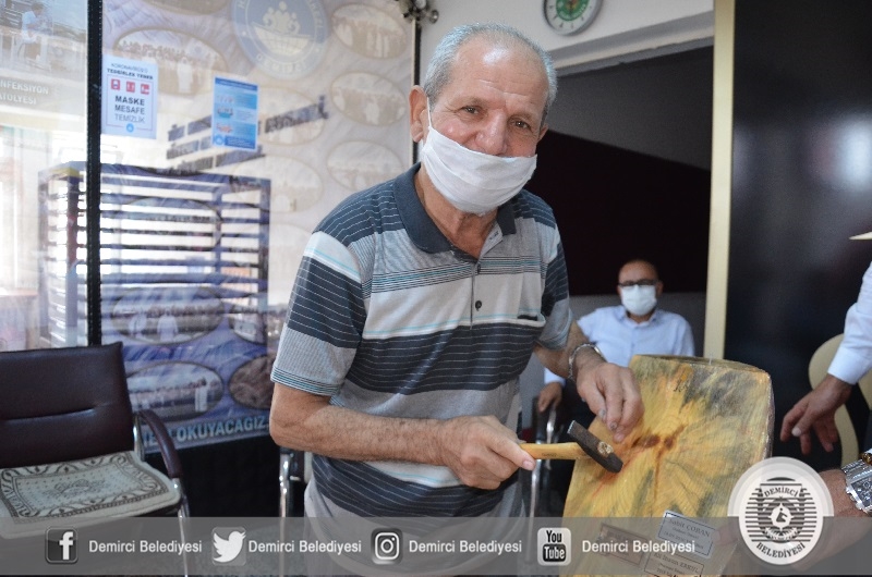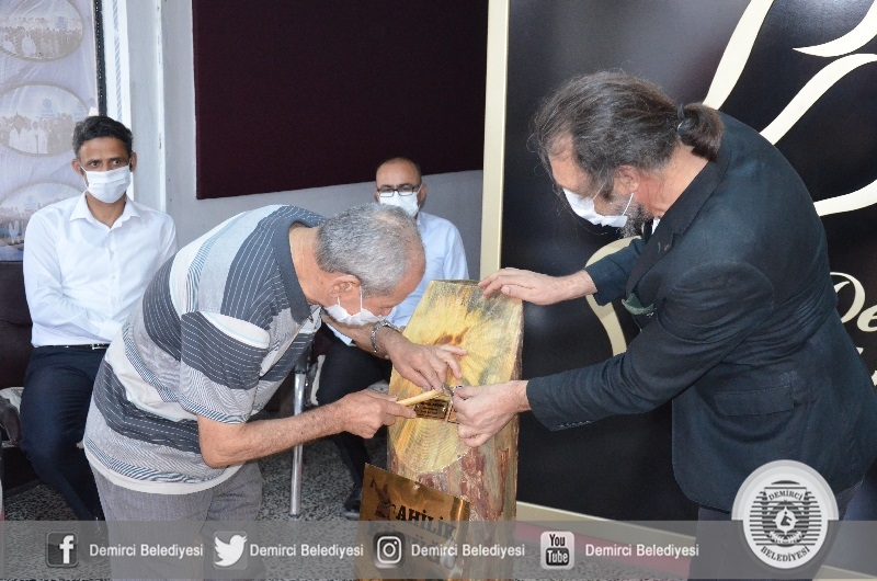 Demirci'de Ahilik ve Ahilik Kültürü haftası etkinlikleri kapsamında 2020 yılı Ahisi Nalbant Sabit Çoban'a plaket takdimi yapıldı.
