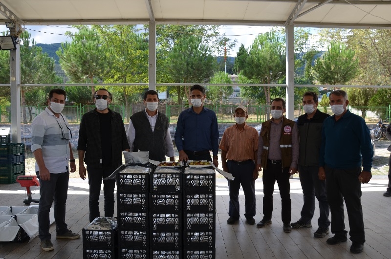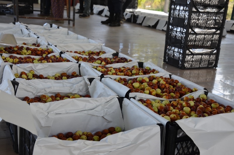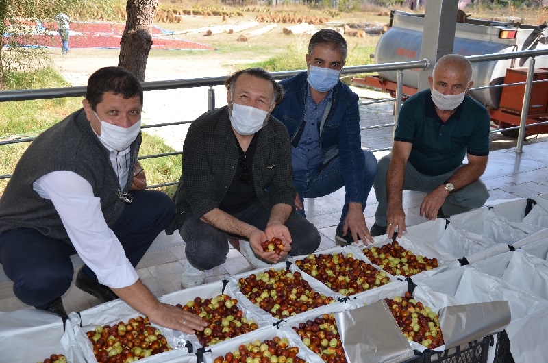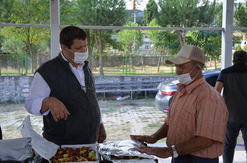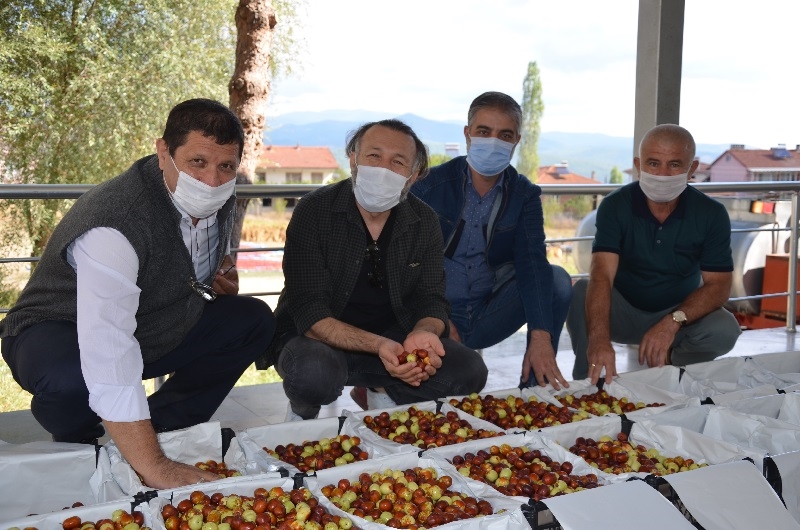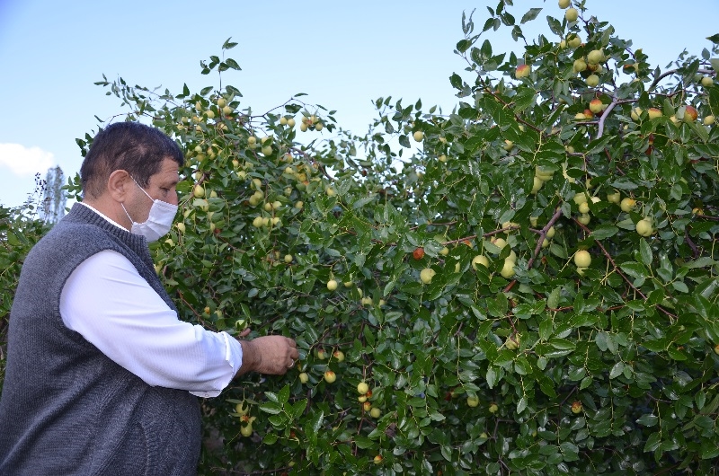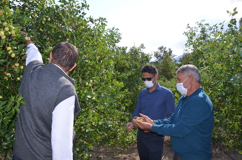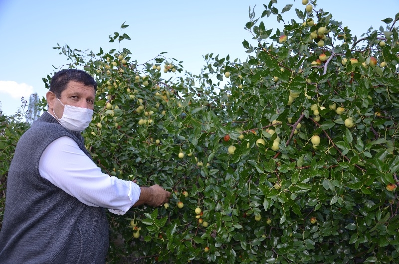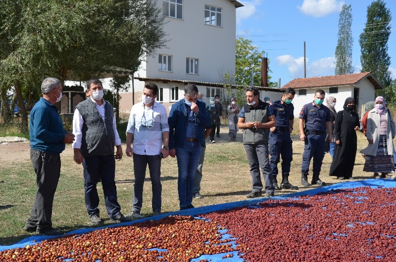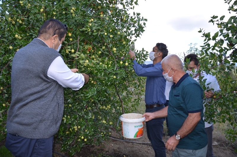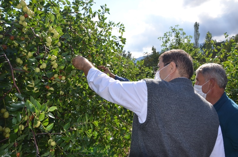 Kaymakam Adem Kaya ve Belediye Başkanı Selami Selçuk, çiftçiler ile birlikte hünnap hasadı yaptı.