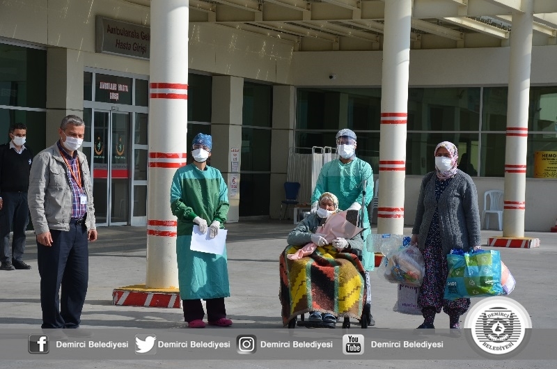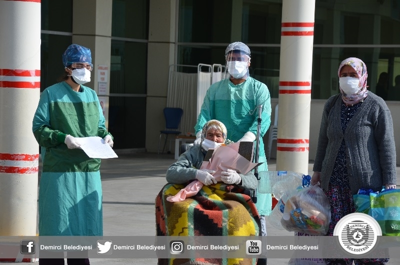 Demirci'de Kovid-19 teşhisi ile hastanede tedavi altına alınan 92 yaşındaki Habibe Dönertaş, sağlığına kavuşarak taburcu edildi.