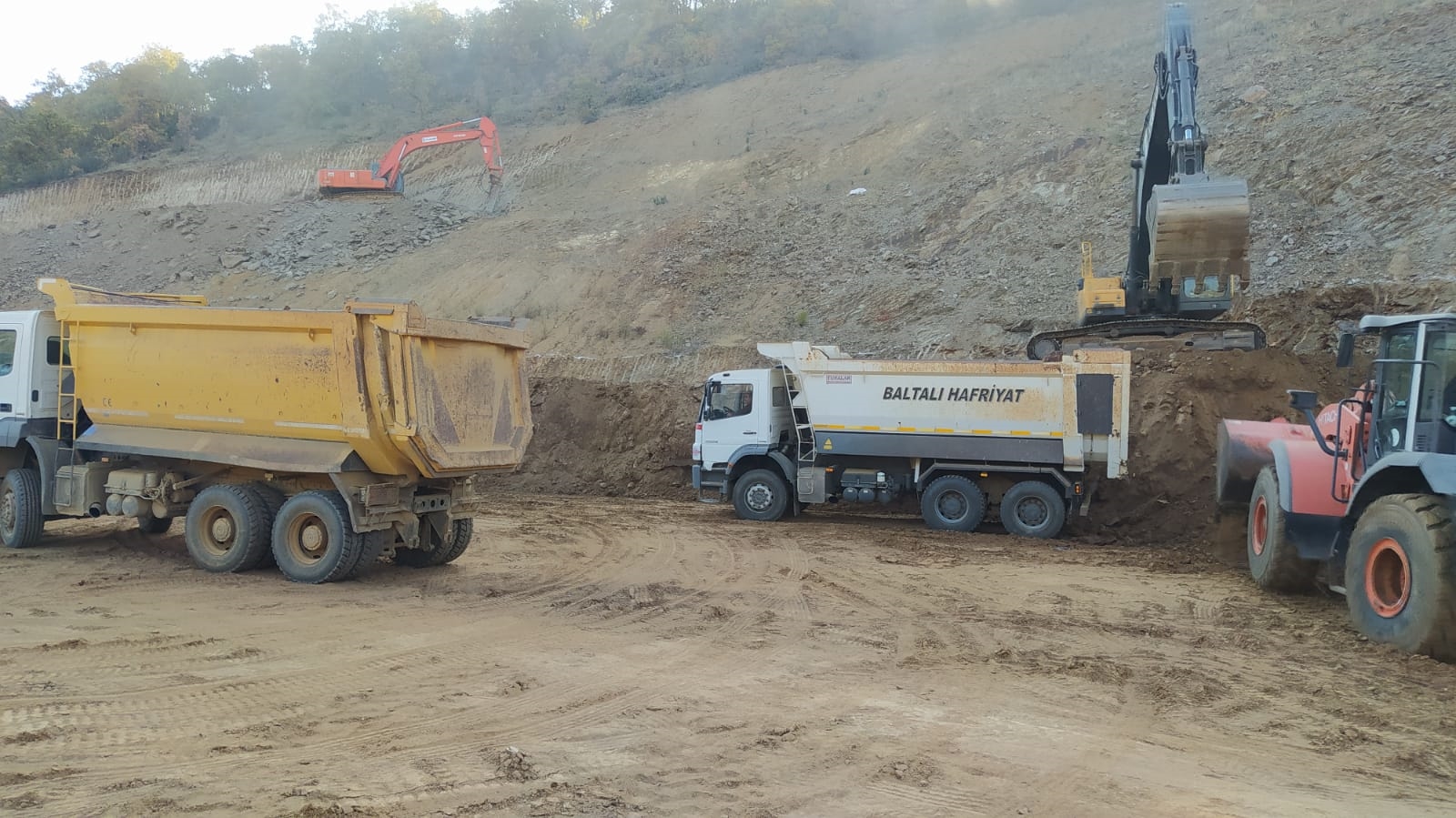 Durhasan Sulama Barajında yüklenici inşaat firması hızla çalışmalara başlayarak 4 tane paletli ekskavatör, 6 kamyon ve 2 kepçe ile barajın yapımını sürdürüyor.