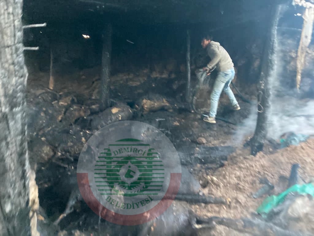 DEMİRCİ'DE YANGIN, 40 HAYVAN TELEF OLDU