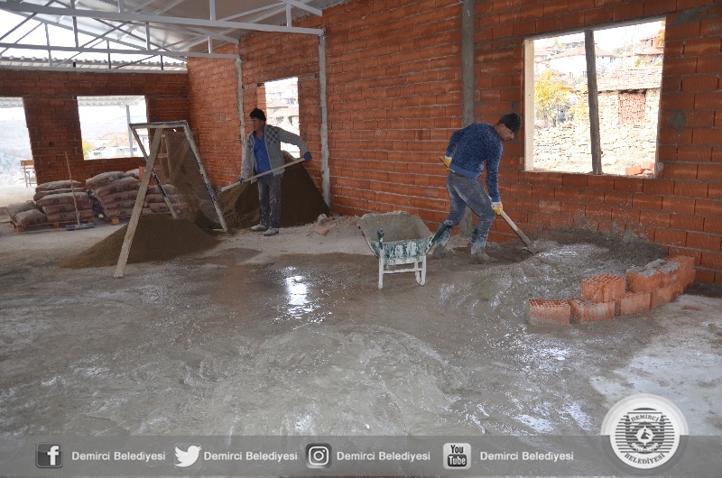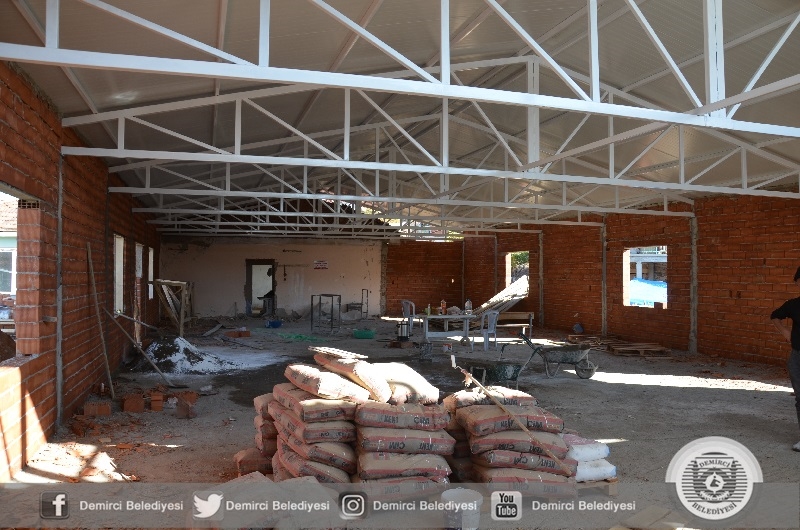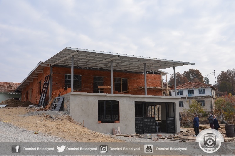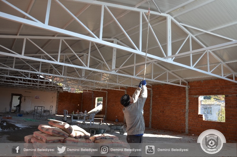 Demirci Belediyesince Serçeler mahallesine 280 metrekare büyüklüğünde, yemekhanesi ve lavabolarının yer aldığı düğün, sünnet ve toplu cemiyet organizasyonlarında kullanılacak olan çok amaçlı salon inşaatında sona geliniyor.
