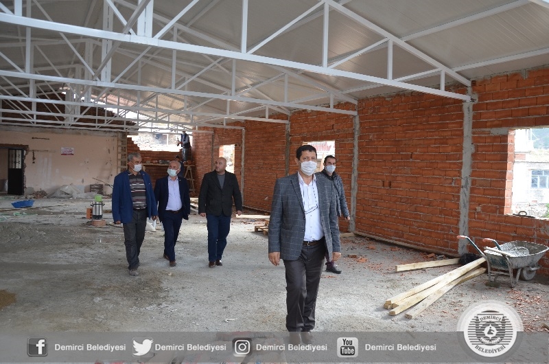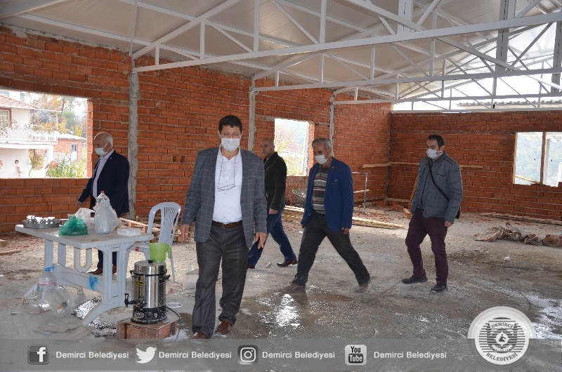 Demirci'nin merkezinden kırsalına her alanda vatandaşlara hizmet sunan Başkan Selami Selçuk, Serçeler mahallesinde yapımına başlanan çok amaçlı salon inşaatında incelemelerde bulundu.