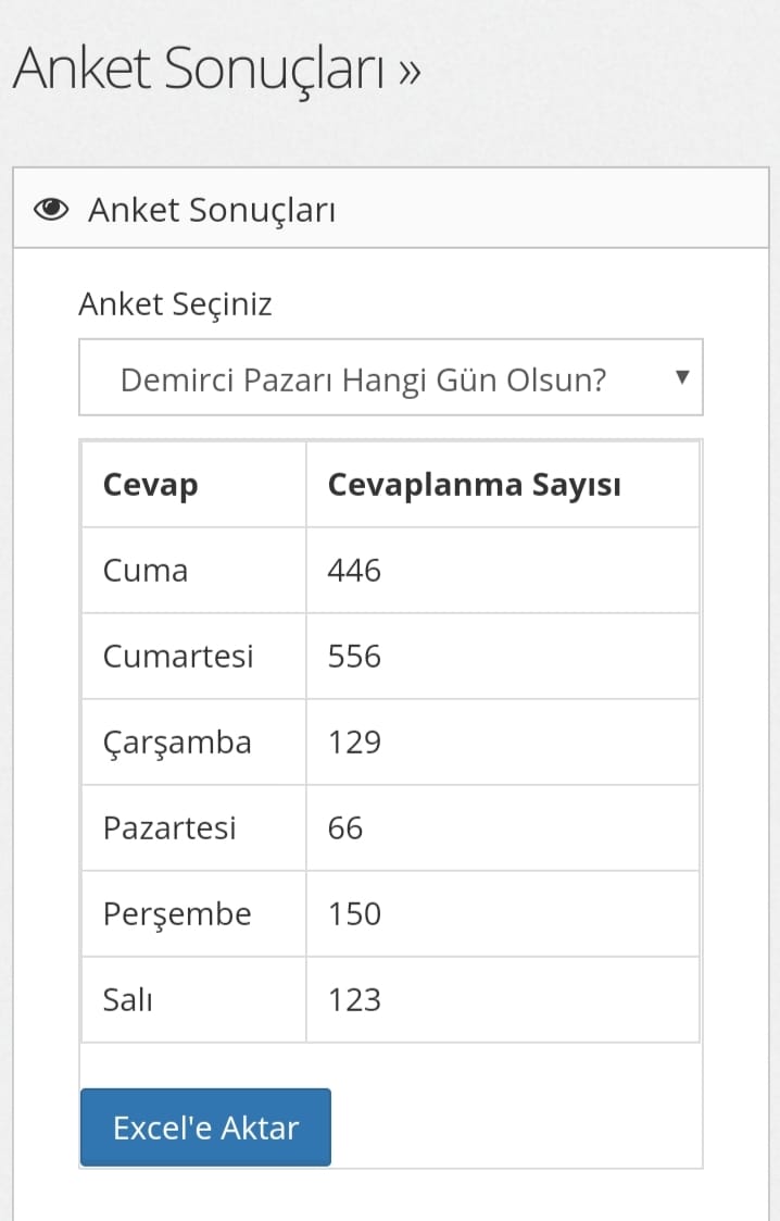 DEMİRCİ PAZARI HANGİ GÜN OLSUN, ANKET SONUCU