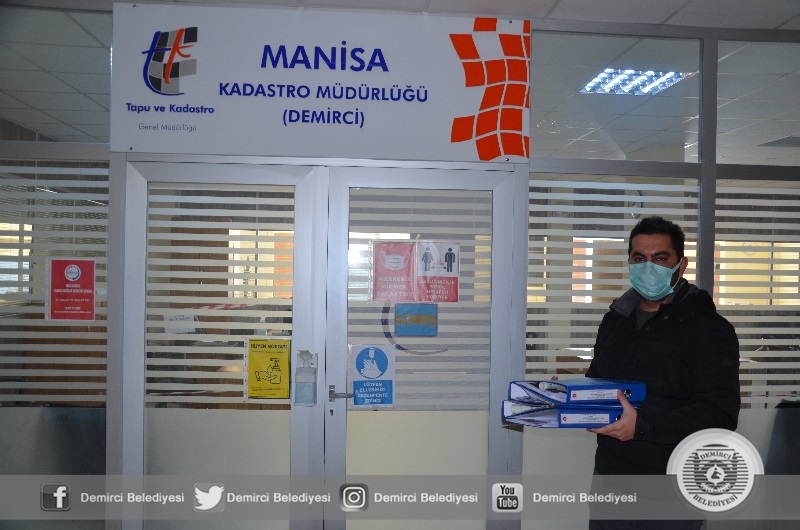 TÜMAŞ Harita Mühendisi Bilal Yıldırım, Demirci Kadastro Müdürlüğüne giderek, boru hattı ve istasyon alanı güzergahının raporları ve kamulaştırma dosyalarının teslimini yaptı.