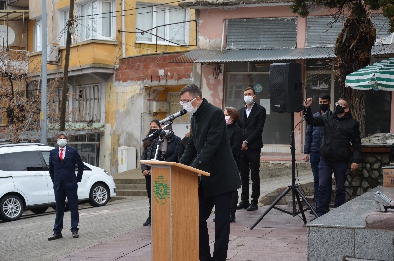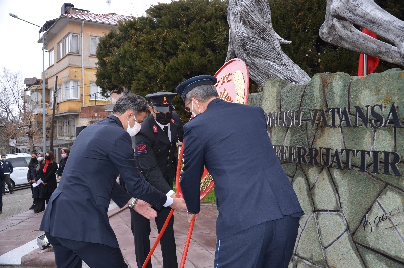 Demirci Kaymakamı Adem Kaya ve Belediye Başkanı Selami Selçuk tarafından anıta çelen sunumu yapıldı.