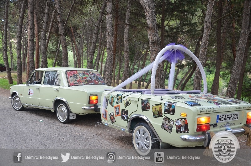Demirci'de yaşayan Umut Demirkan'ın modifiye ederek römork taktığı Murat 124 model otomobil, "gelin arabası" olarak talep görüyor.