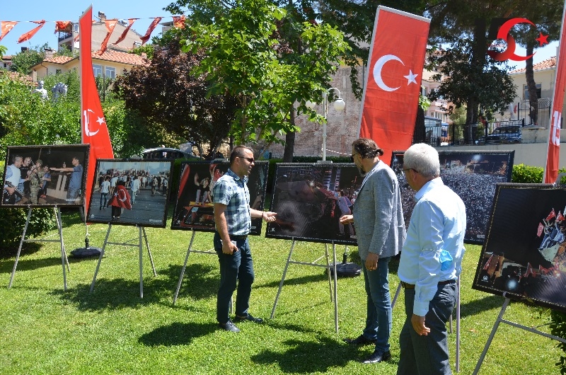 Demirci Belediyesi hizmet binası bahçesine kurulan " AA 15 Temmuz Fotoğraf Sergisinin " açılışını yapan Kaymakam Adem Kaya ve Belediye Başkanı Selami Selçuk, ilçe protokolü ve vatandaşlarla ile birlikte sergiyi gezdiler.