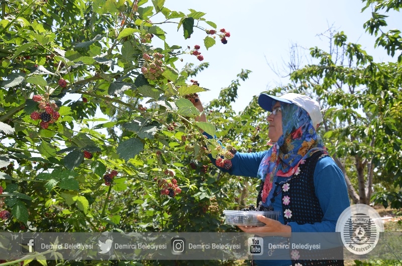 Demirci'de yılda 12 ton böğürtlen meyvesi üretimi yapan Sami Çelik, ürünlerini yurtiçi pazarına gönderirken, yurtdışı pazarına da sunmaya hazırlanıyor.
