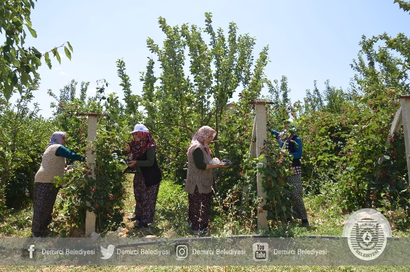 Üretici Sami Çelik yaptığı açıklamada " Kiraz, badem, ceviz haricinde alternatif bir tarım ürünü üretmek istedim. Çok araştırdım, toprak tahlilleri yaptırdım. Böğürtlen meyvesi üretmeye karar verdim. 2009 yılında arazimi dikim koşuluna getirerek 2 Bin fidanı toprakla buluşturdum. Daha sonra gelir seviyesi ve ürün rekoltesi yüksek olunca fidan sayısını 2 yıl sonra 4 Bin'e çıkardım. Şu anda 4 Bin'e yakın fidandan ürün almaktayım. Dönüm başına 3 ton'a yakın ürün alıyorum. Böğürtlen üretimi çok hassastır. Mayıs ayında çiçekleme başlar, 2 ay sürer ve sonra meyveler oluşur. Temmuz'da başlayan hasad eylül ayı sonuna kadar devam eder" dedi.