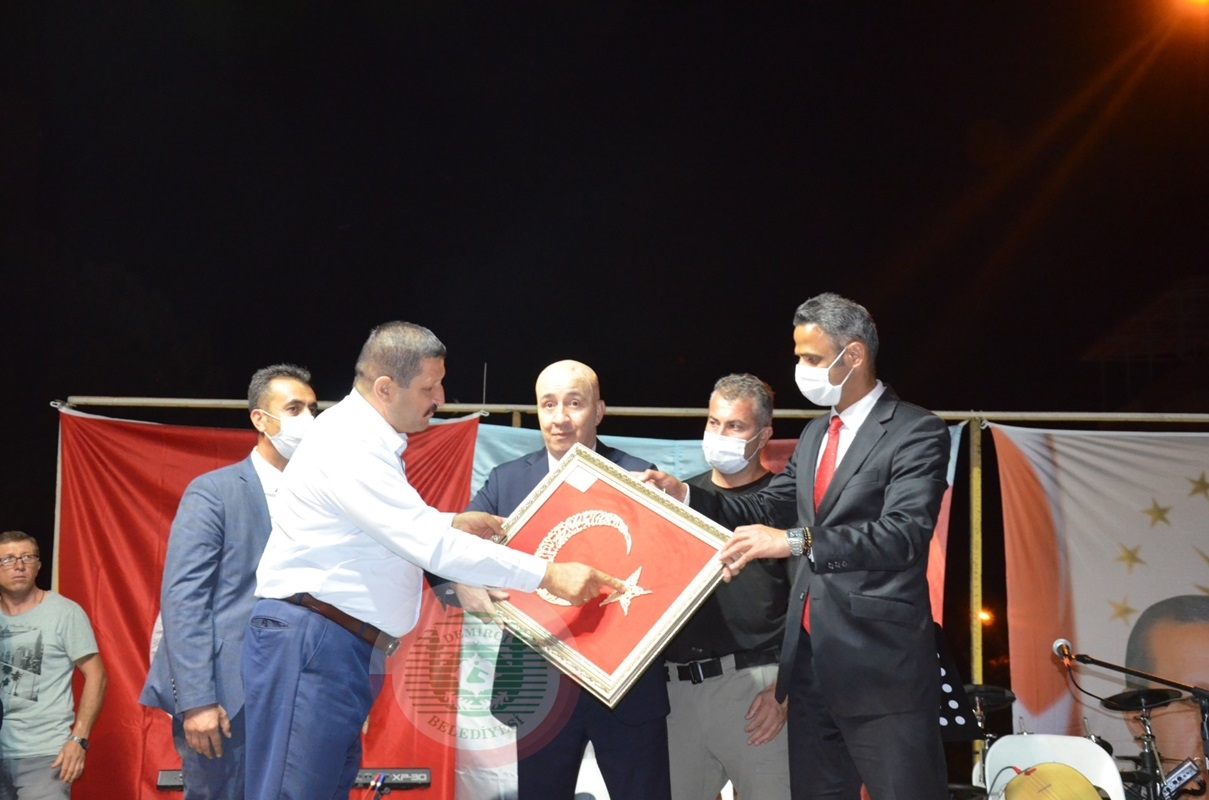 Konuşmaların ardından Demirci Kaymakamı Adem Kaya, Cumhurbaşkanı Başdanışmanı Turgut Aslan'a çiçek ve el dokuma demirci halısı hediye etti.