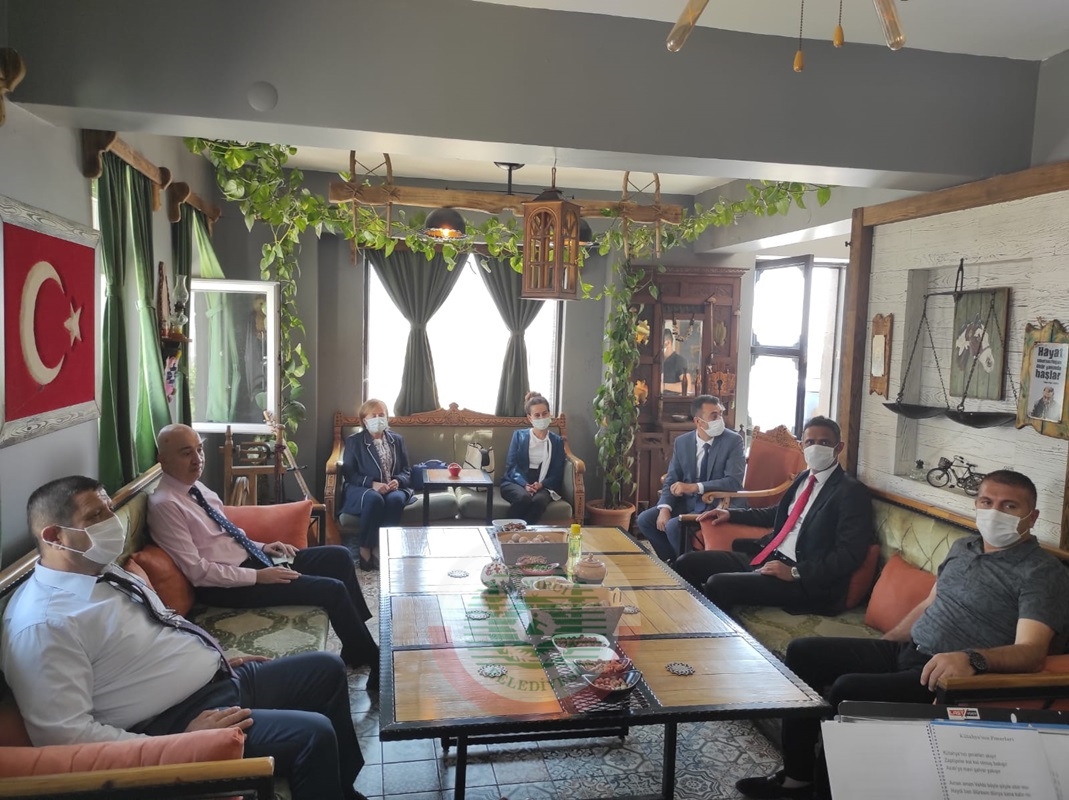 Cumhurbaşkanı Başdanışmanı Turgut Aslan ziyaretleri kapsamında ilk olarak kamp malzemesi üretimi yapan firmayı, Halk Eğitimi Merkezi Müdürlüğünde kursiyerlerin binbir emekle yaptığı kıl çadırı sergisini gezdi.