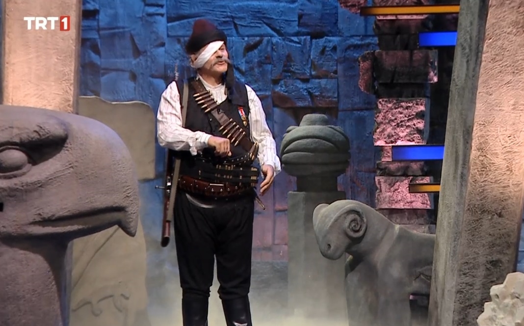 Demirci Akıncıları 11'inci Müfreze Komutanı Parti Pehlivan TRT 1'de yayınlanan 3' te 3 yarışma programında canlandırmalı tarih sorusu olarak yer aldı.