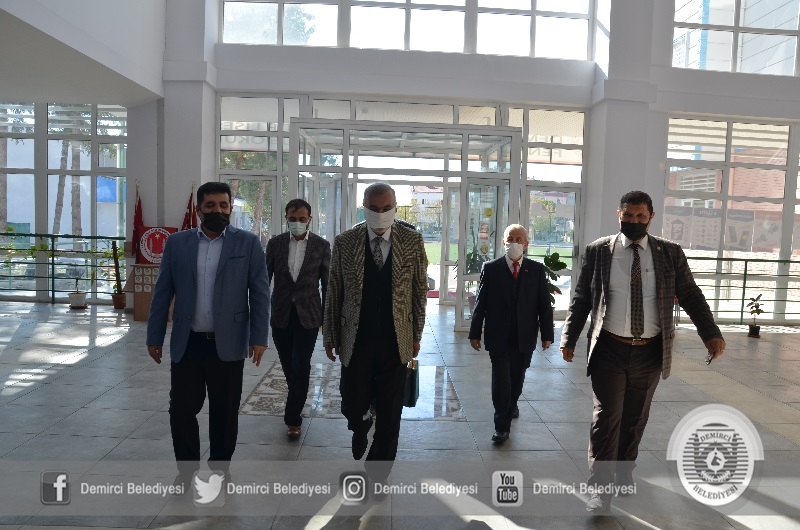 Uludağ Üniversitesi İlâhiyat Fakültesi Öğretim Üyesi Prof. Dr. Mehmet Emin Ay Demirci ziyaretinde ilk olarak Belediye Başkanı Selami Selçuk'u makamında ziyaret etti.