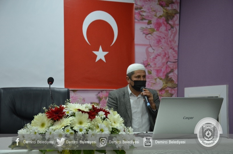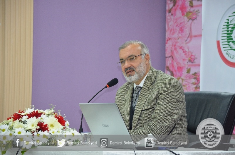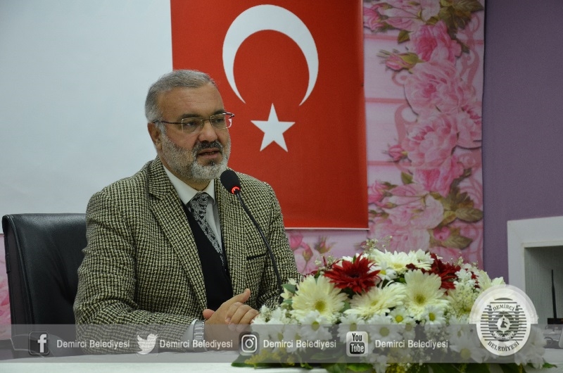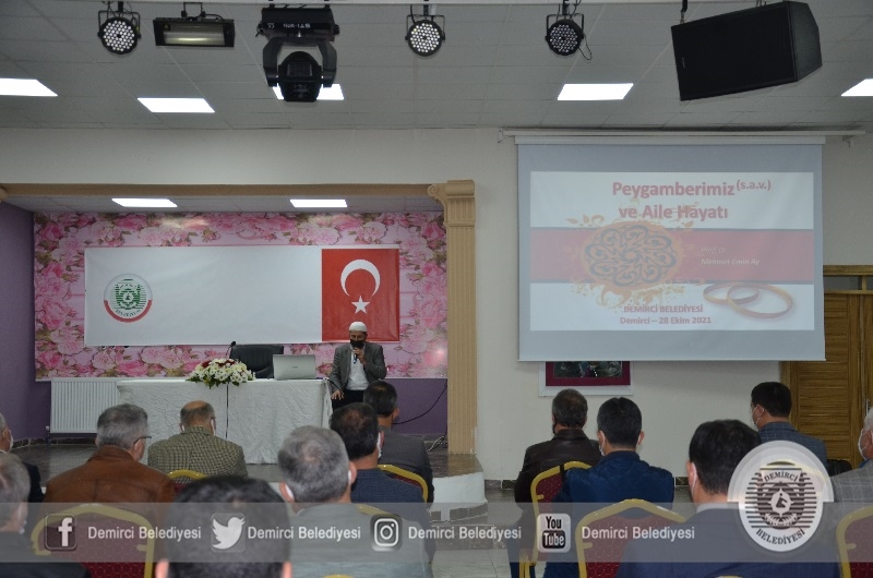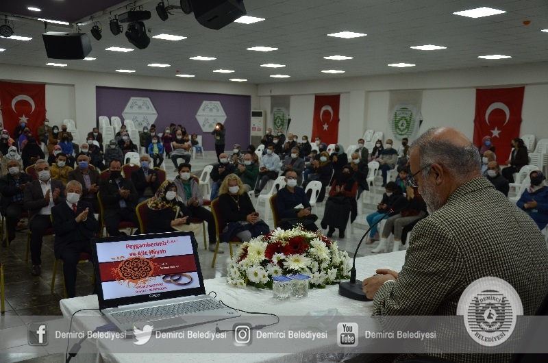 28 Ekim Perşembe akşamı Demirci Belediyesi Akıncılar Düğün salonunda düzenlenen konferansa konuşmacı olarak katılan Prof. Dr. Mehmet Emin Ay, katılımcılara Hz. Muhammed (S.A.V.) hayatından kesitler anlatırken, aile olmanın önemi ile ilgili önemli bilgiler verdi.