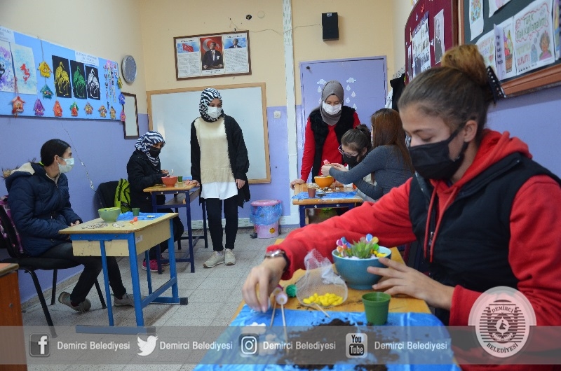 Öğrencilerden Kevser Atalay ise " Saksı yapıyorum. Çiçeğimizi dikmeden önce saksı içini toprak doldurup taşlarla süsledik. Sonrasında çiçeğimizi dikiyoruz. Çok mutluyum burada. 9. sınıftan bu yana geliyorum. Çok güzel şeyler yapmayı öğrendik. Dikiş yapıyoruz, resim yapıyoruz, süslemeler yapıyoruz " dedi.