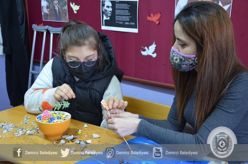 Demirci Eğitimi Halk Eğitimi Merkezi Müdürü İsmail Çetinkaya yaptığı açıklamada " Halk eğitimi merkezi olarak birçok alanda kurslar açıyoruz. Bizim en öncelikli kurslarımız dezavantajlı gruplara yönelik düzenlediğimiz kurslar. Demirci'de meslek liselerinde özel eğitim öğrencilerimize geleneksel el sanatlarına yönelik kurslar açtık. Amacımız öğrencilerimizin el sanatlarını öğrenmeleri, kişisel gelişimlerine katkı sağlamak ve en güzel bu toplum için onlarında güzel şeyler ürettiklerini kendileri de görmesidir. Her bir öğrencimiz ahşapta, saksı yapımında ve ebru sanatında güzel eserler ortaya çıkarıyorlar. Hedefimiz birçok okulda hem özel eğitim öğrencilerimize ve hem de kadınlara yönelik kurslar açmaya devam edeceğiz. Kurumumuzda müzik, spor, sanat, tarım ve hayvancılık alanında da binlerce kişinin katılımı ile kurslarımız var. Kurumumuzun mottosu ikinci evinize bekleriz. siz gelemiyorsanız biz geliriz. Biz her yerde vatandaşlarımız için kurslarımızı açıyoruz "dedi.