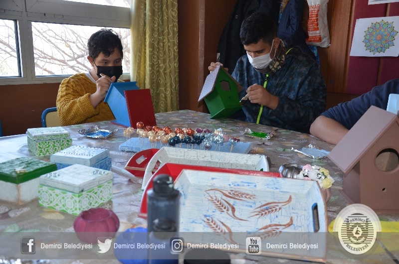 Halk Eğitimi Merkezi Müdürlüğünce özel eğitim öğrencilerine açılan kurslarda öğrenciler birbirinden güzel ürünler ortaya çıkarıyor.