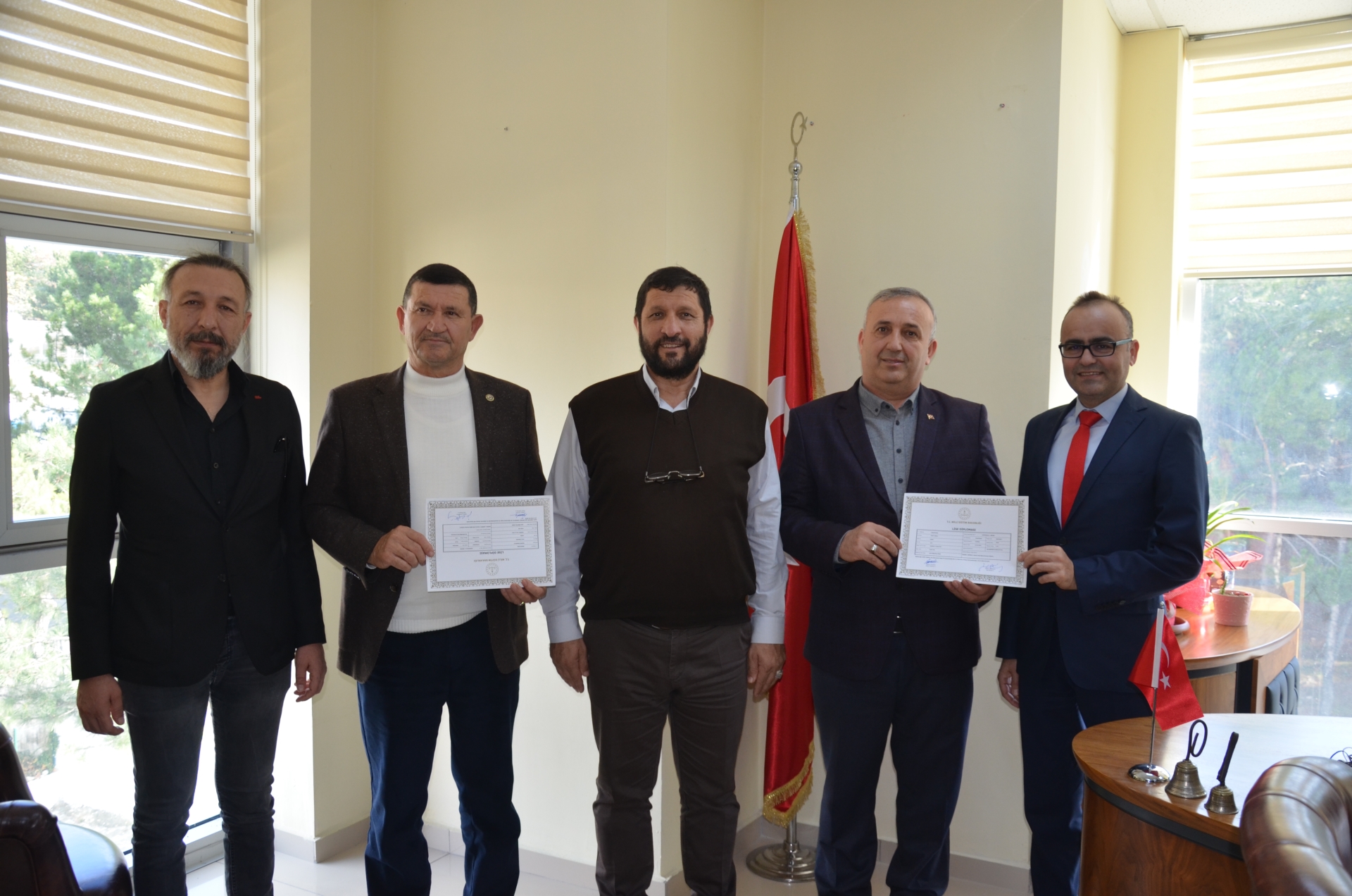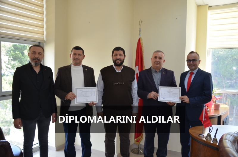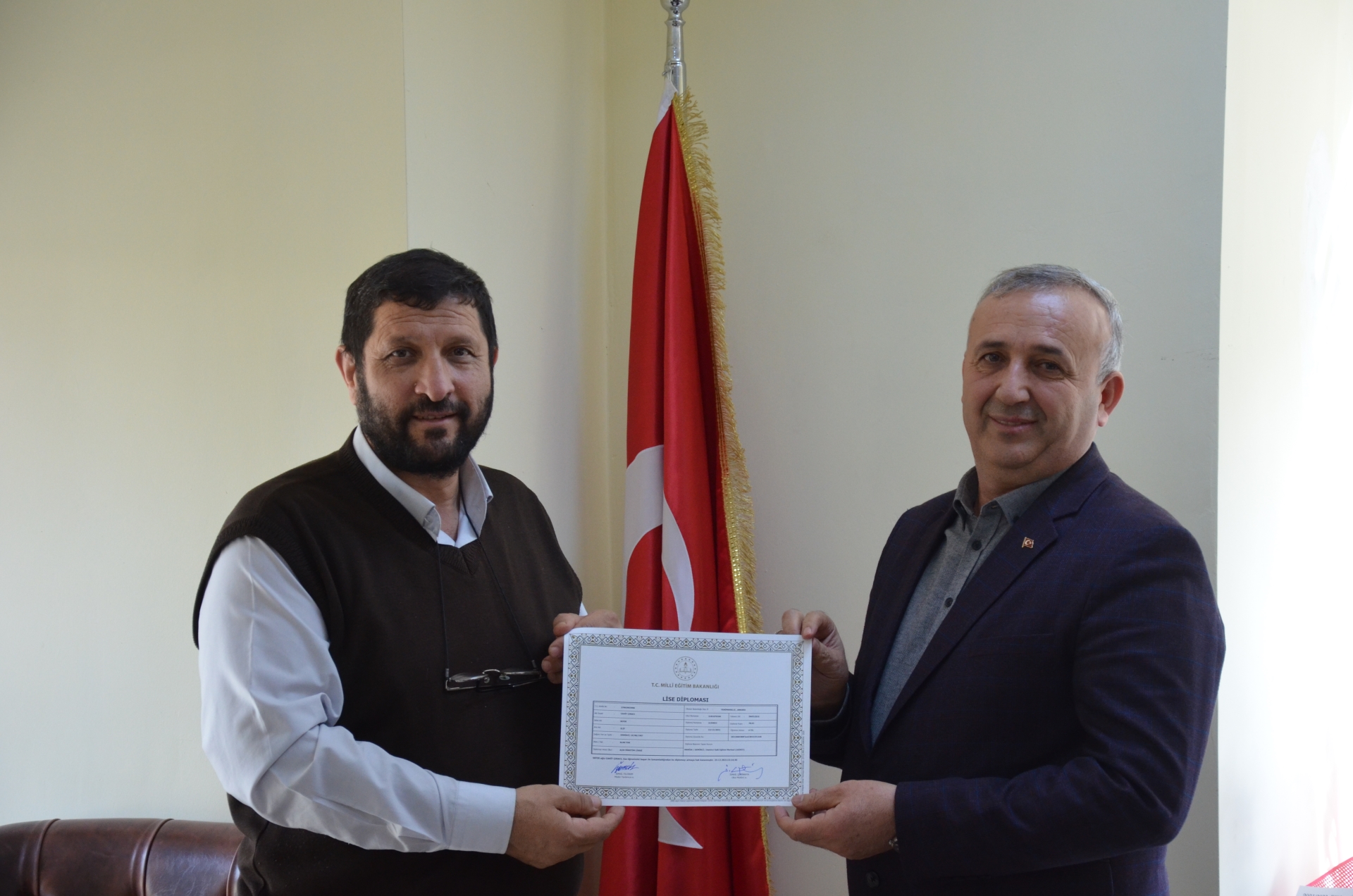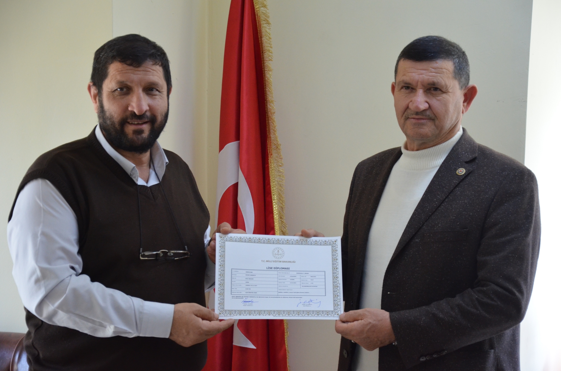 Açık Öğretim Lisesi Sınavlarını başarı ile geçen Demirci Ziraat Odası Başkanı Mehmet Karakaya ve Mahmutlar eski Belediye Başkanı Cahit Çıracı, İlçe Milli Eğitim Müdürlüğünde düzenlenen törenle diplomalarını aldılar.