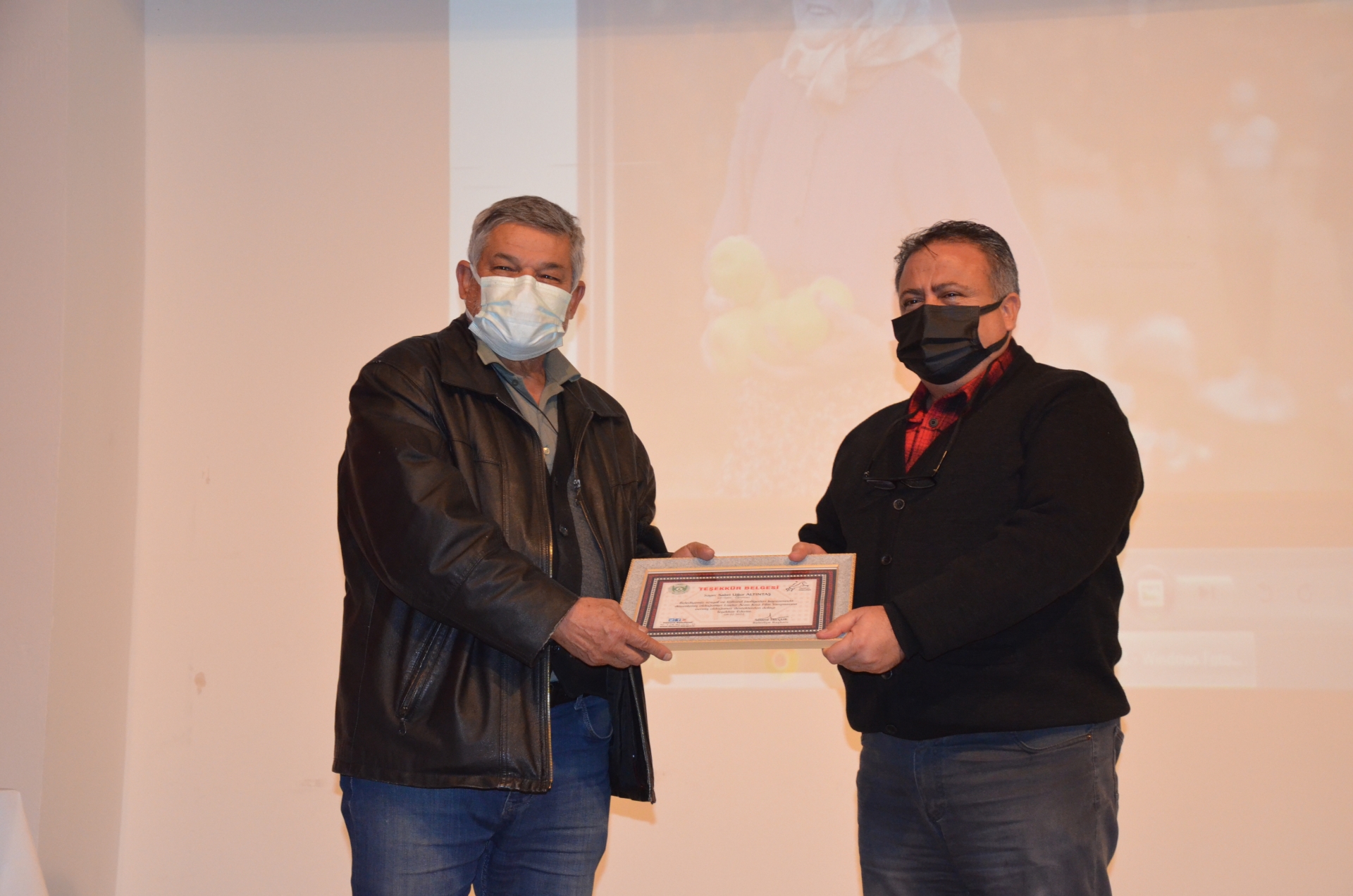 Kaymakam Adem Kaya, Belediye Başkanı Selami Selçuk'ta, İmam Hatip Lisesi Fen ve Sosyal Bilimler Proje Okulu Müdürü Özcan Darıcı'ya ve Necip Fazıl Kısakürek Fen Lisesi Müdürü Mustafa Yıldız'a Teşekkür Belgesi ve ödülleri takdim ettiler.