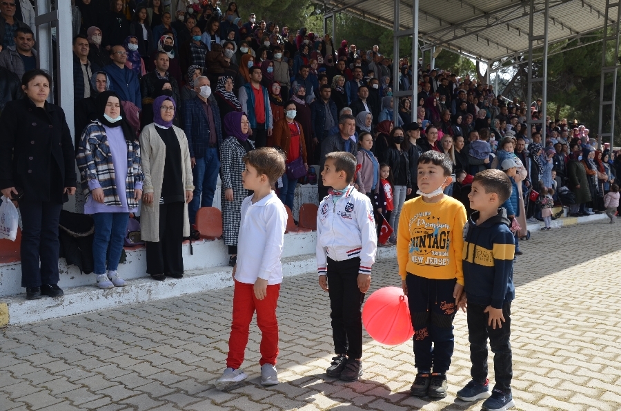 Vatandaşların ve ailelerin yoğun bir katılım gösterdiği bayram töreninde ilk olarak Kaymakam Adem Kaya ve Belediye Başkanı Selami Selçuk öğrencilerin ve halkın bayramını kutladılar.