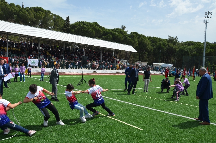 İlkokul ve Ortaokullar arası halat çekme, yumurta taşıma, koşu ve çuval yarışlarının finalleri yapıldı.