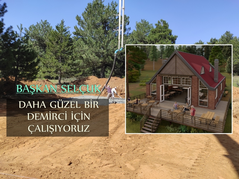 Demirci'yi spor ve doğa turizminde merkez yapma yolunda çalışmalarını hızla sürdüren Belediye Başkanı Selami Selçuk, Sarıçayır Doğa Aktiviteleri ve Milli Bilinç kamp alanında hizmet verecek olan kır lokantası ve macera parkının çalışmalarını yerinde inceledi.