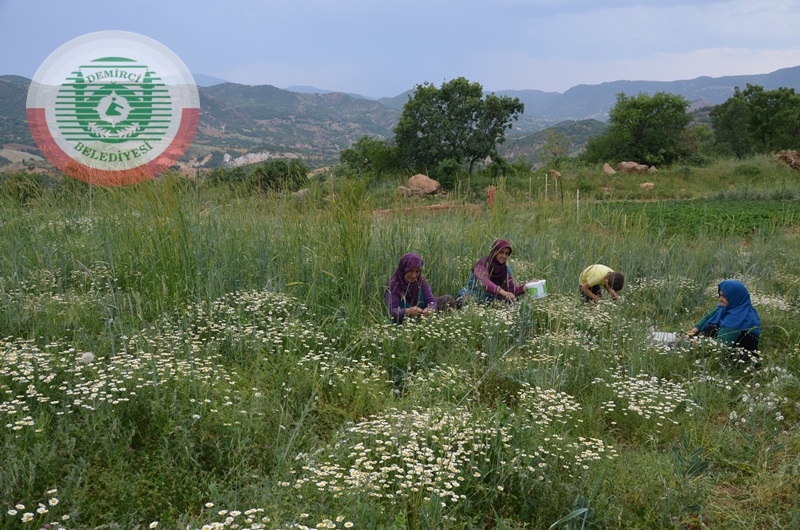 Demirci'de Kışlak, Yavaşlar, İmceler, Danışmentler, Gürçeşme, Elek, Esenyurt, Ulacık ve Rahmanlar mahallelerindeki kadınlar sabahın erken saatlerinde ve akşam saatlerinde dağlara ve yaylara giderek doğada yetişen papatyaları hasat ediyor.
