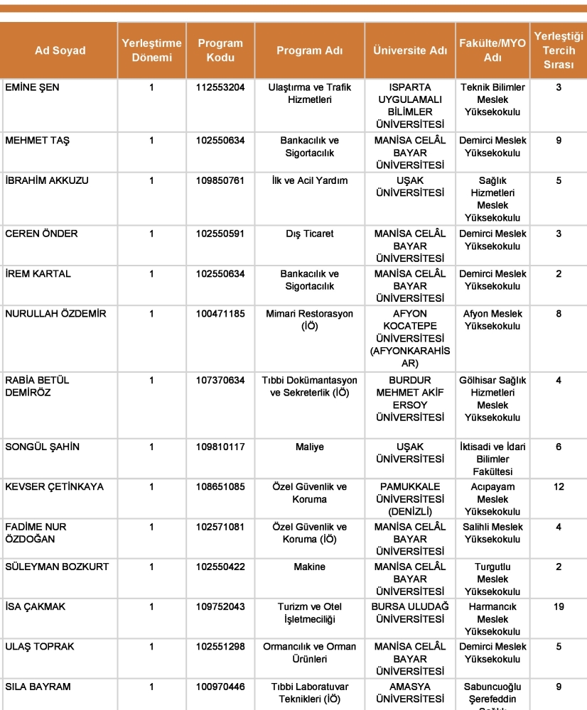 Demirci Anadolu Lisesi YKS yerleştirme sonuçları.