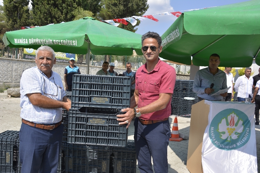 Manisa Büyükşehir Belediyesi Kırsal Hizmetler Dairesi Başkanı Yılmaz Usta ise " Manisa Büyükşehir Belediye Başkanımız Cengiz Ergün üreticimize desteklerini sürdürüyor. Bu yıl Manisa Büyükşehir Belediyesince 23 Milyon bütçeyi Manisa'daki tarım üretimine ayrıdık. 500 adet damızlık koç desteği için hazırlanıyoruz. Yılbaşı itibariylede İl Tarım ve Orman Müdürlüğümüz işbirliği ile 500 adet damızlık koçu üreticilerimize teslim edeceğiz. Tarım günümüzde artık çok önemli. Zeytin kasalarımızı üreticilerimize teslim etmeye başladık. Üreticilerimize güzel bir hasad dönemi olmasını diliyoruz. Manisa'da 72 bin kasayı üreticilerimize teslime edeceğiz" dedi.