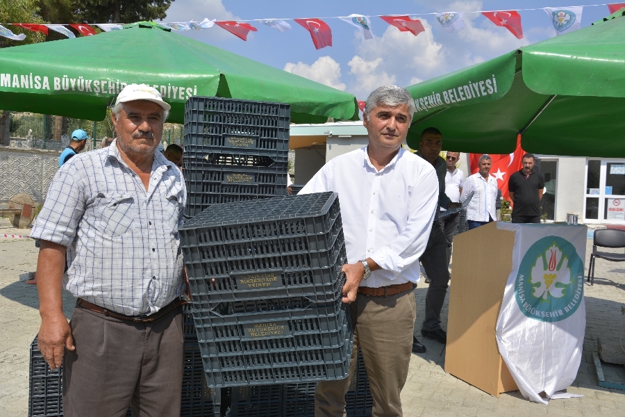 Manisa Büyükşehir Belediyesi tarafından il genelinde zeytin üretimi yapan üreticiye destek için zeytin kasası dağıtıldı.
