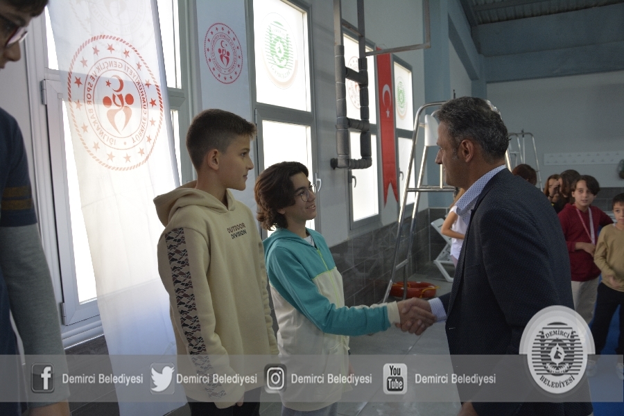Ödül töreninde konuşan Demirci Belediye Başkanı Selami Selçuk” Yüzme yarışmalarına katılan tüm sporcularımızı teşekkür ediyorum. Çocuklarımızın bu yaşlarda yüzme öğrenmesi çok önemli. Amatör spor haftasınca düzenlenen yüzme yarışmalarında dereceye giren, giremeyen tüm öğrencilerimiz bizim için şampiyondur “ dedi.