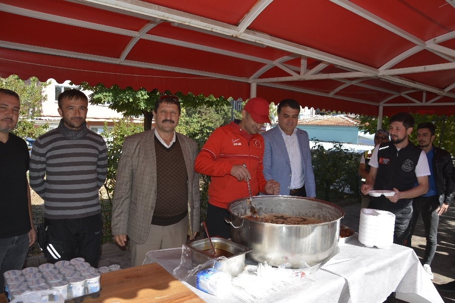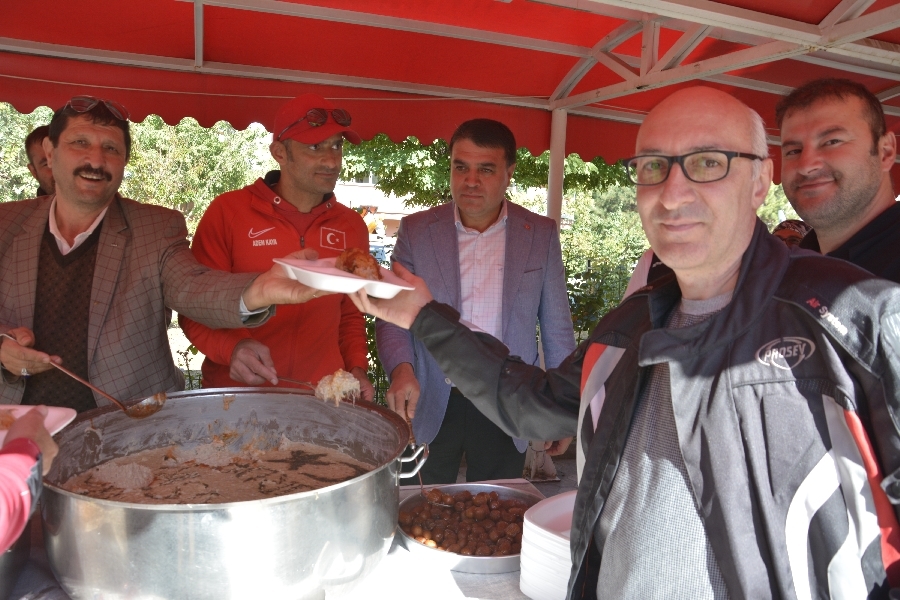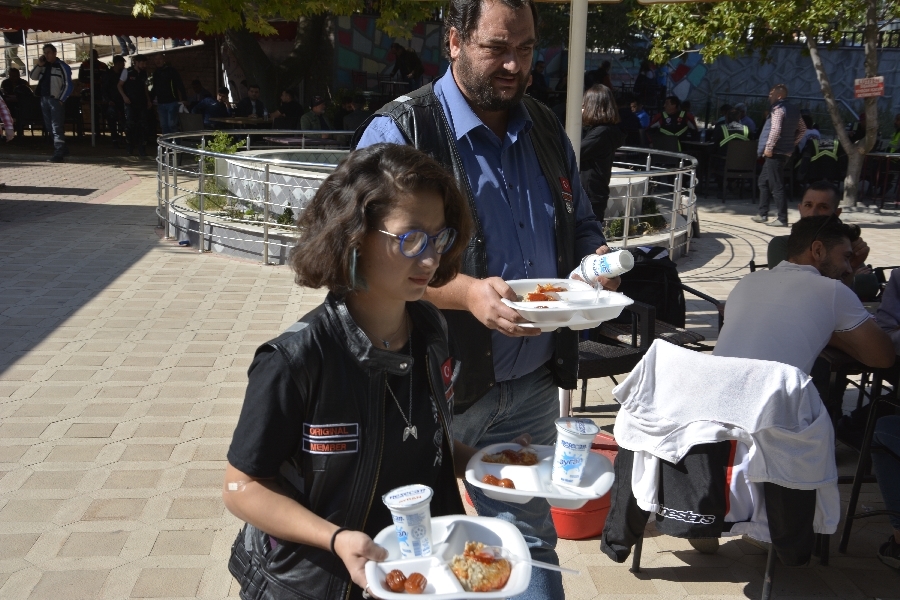 Demirci Halıkent Atatürk parkında düzenlenen faaliyette motosiklet tutkunlarına ilçenin yöresel lezzeti olan keşkek ikramı yapıldı.