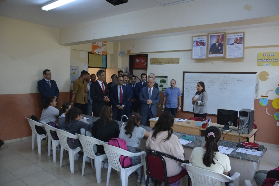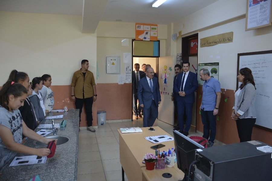 Manisa Valisi Yaşar Karadeniz, Kılavuzlar mahallesi Şehit Ferhat Vurucu Ortaokulunda öğrenim öğrencileri de ziyaret ettikten sonra ilçeden ayrıldı.