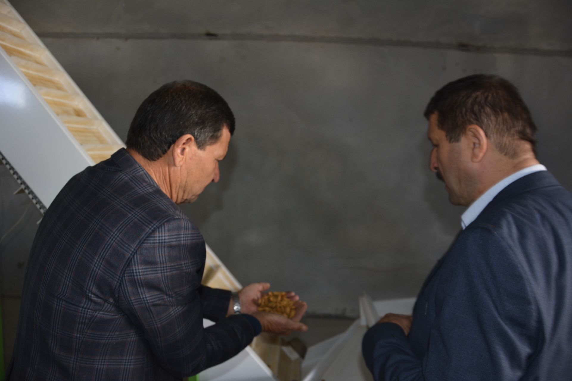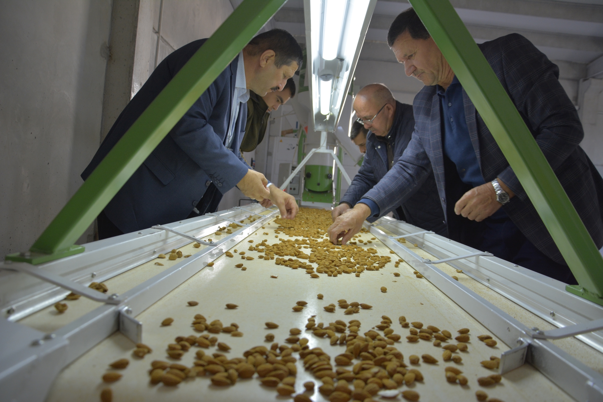Belediye Başkanı Selami Selçuk'ta, Tarım Ürünleri Merkezine giderek faaliyetine başlayan badem soyma ve kırma makinesini inceledi, Demirci Ziraat Odası Başkanı Mehmet Karakaya'dan diğer makineler ile ilgili bilgi aldı.