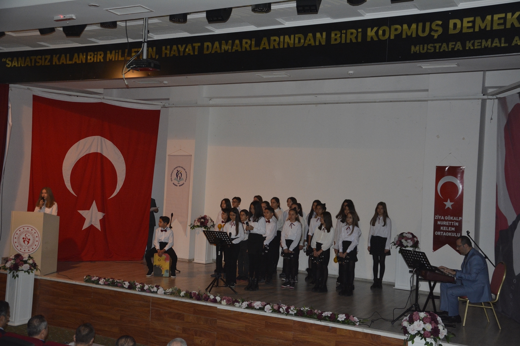 Konuşmaların ardından Ziya Gökalp Nurettin Kelem Ortaokulu öğrencileri tarafından günün önemini belirten şiirler ve şarkılar okundu.